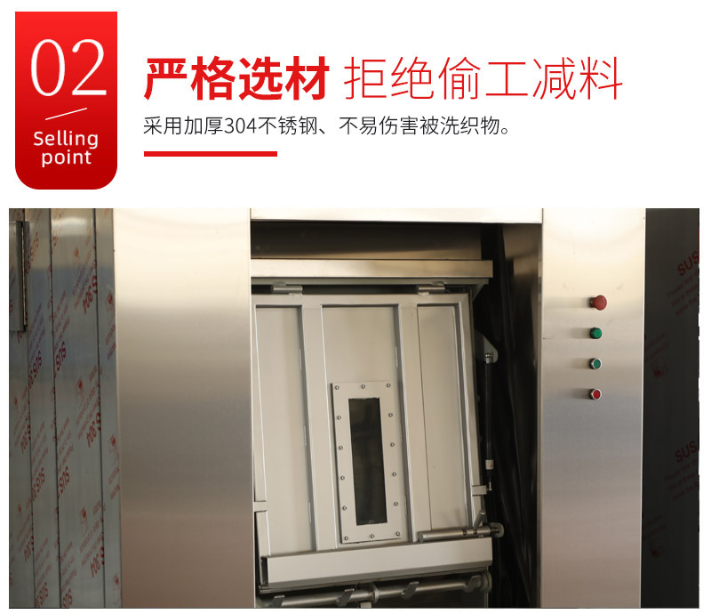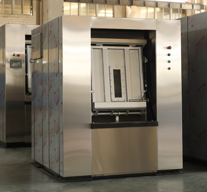 ● 首先,从设备上采取卫生隔离式洗衣机。背靠背的两道机门,使污染布草的装卸和洁净布草的卸载从不同的两个门进出,从源头上避免了交叉感染
