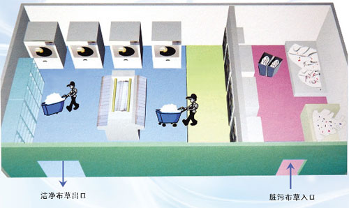 ● 污染区:污染布草的消毒、分类、洗涤、独立的空间、单独的操作人员、单独的洗涤用具、严格地控制了污染的传播;