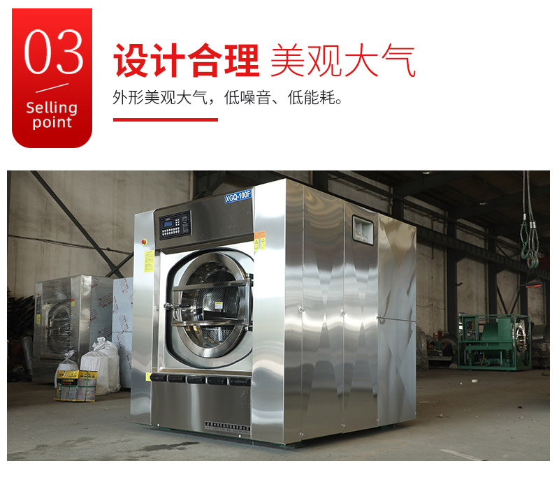 1、电脑控制、全自动、手动可选,洗涤容量大,洗净率高,噪音、振动小,外形美观。2、悬浮减震,可安装在楼层上使用。